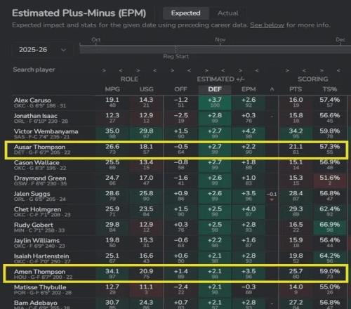 目前NBA联盟共有17对亲兄弟球员,他们为了各自声望积极打拼,对其家族来说也是无限荣耀,而在这17对兄弟球员中,论整体进攻火力最强的肯定是库里兄弟组合,但要是论防守实力最强的,毫无疑问是阿门-汤普森和奥萨尔-汤普森兄弟组合,那这对兄弟的防守能力有多强呢?今天的球员上上测就为大家带来汤普森兄弟的防守数据分析(数据截止日期2025年12月12日).