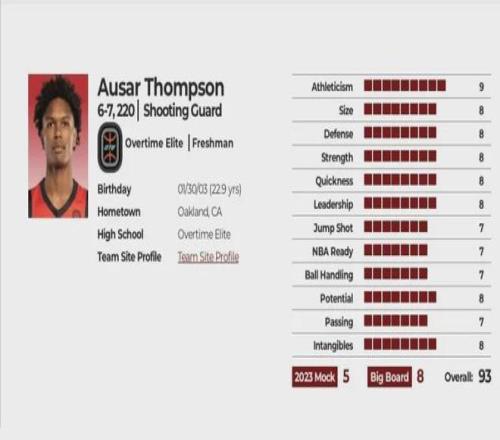 接着我们再看奥萨尔的,综合评分93分,预计选秀顺位5-8顺位,选秀模板特雷沃-阿里扎,相比哥哥,他的投射能力7分略好一点,其他NBA Ready准备、Ball Handling持球、Passing传球也是7分稍显不足,速度没有哥哥出色,简单一对比就可以看出,在选秀阶段,哥哥的持球能力更强,身体天赋更强,而弟弟投射稍好一点,网站评语如下(精简内容):