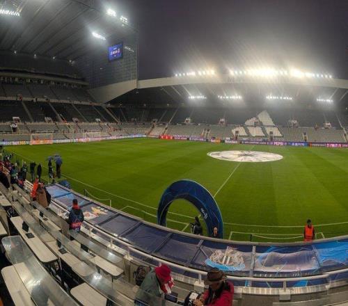 纽卡对阵本菲卡赛前,圣詹姆斯公园球场下起暴雨