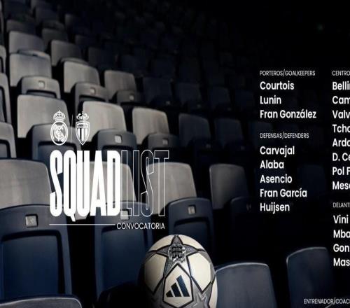 皇马欧冠战摩纳哥大名单:姆巴佩领衔,卡雷拉斯因停赛缺席 -